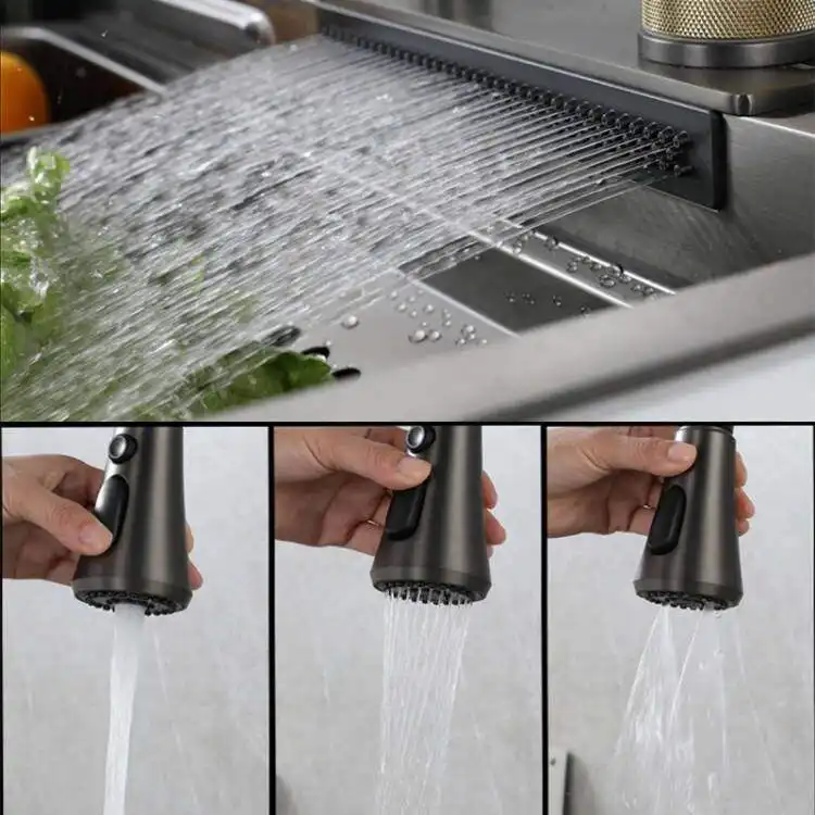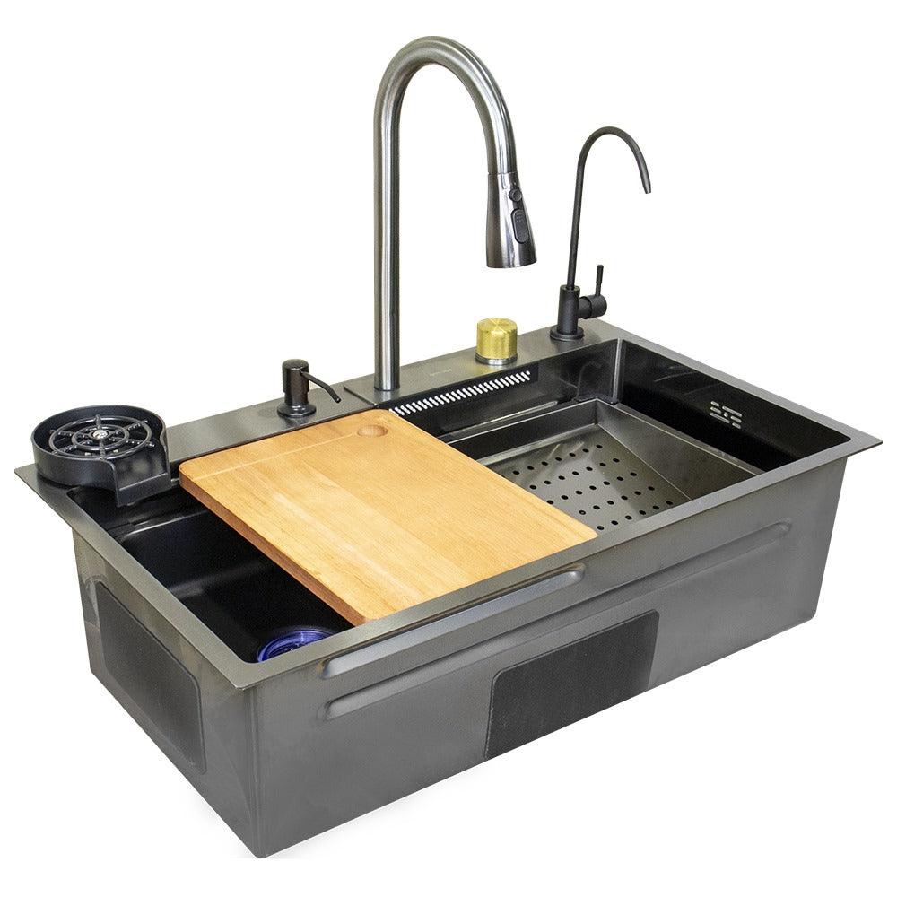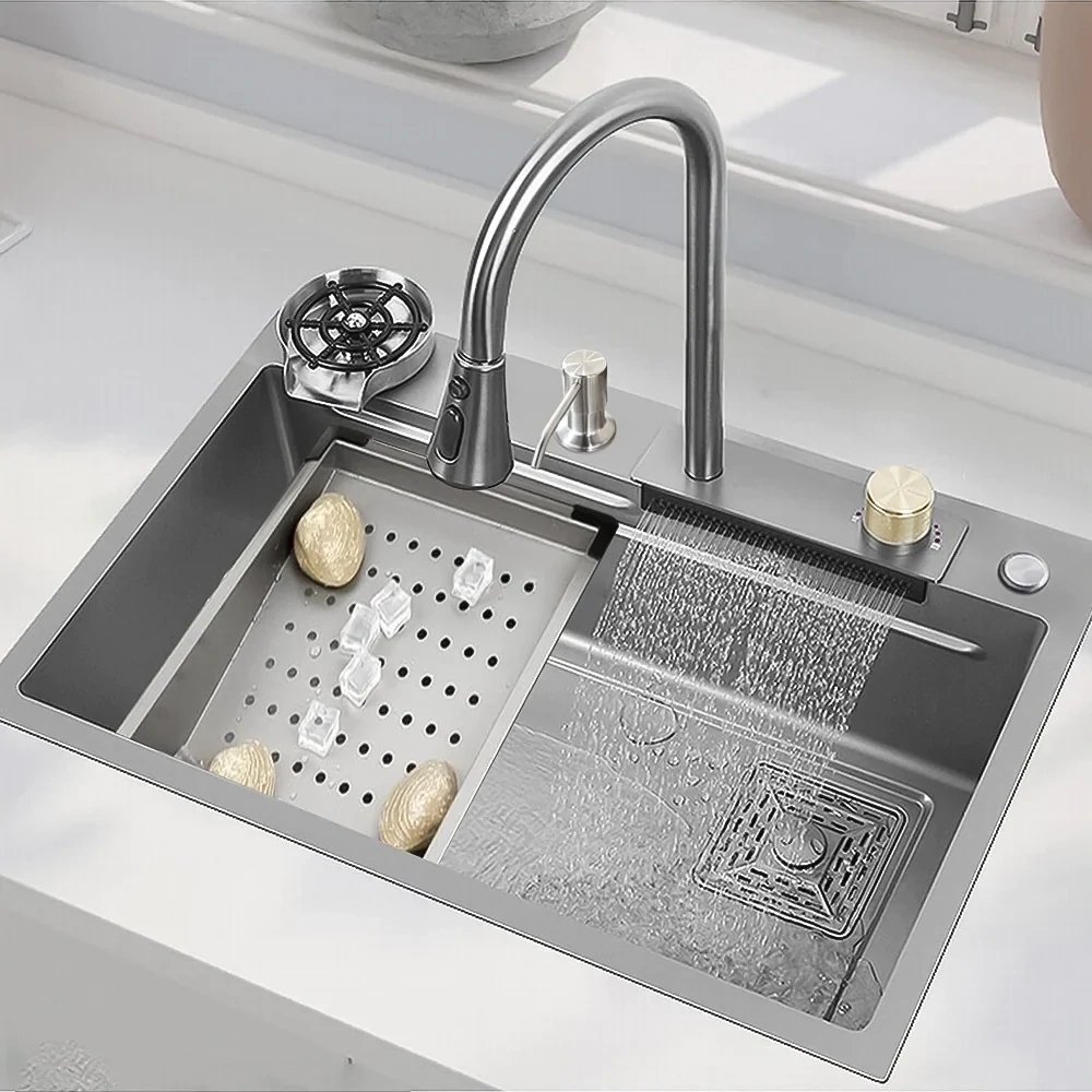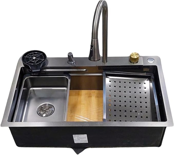 حوض مطبخ سمارت ( بدون زراير ) 75×45 سم ستانلس بطبقة نانو سمارت - شامل الاكسسوار + حنفية فتلر